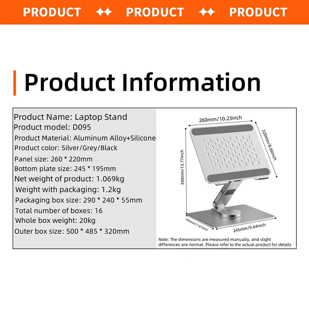 Foldable Aluminum Laptop Stand with 360° Swivel Base