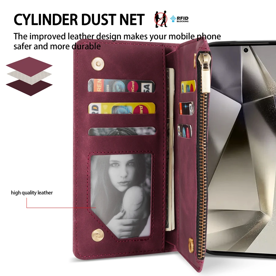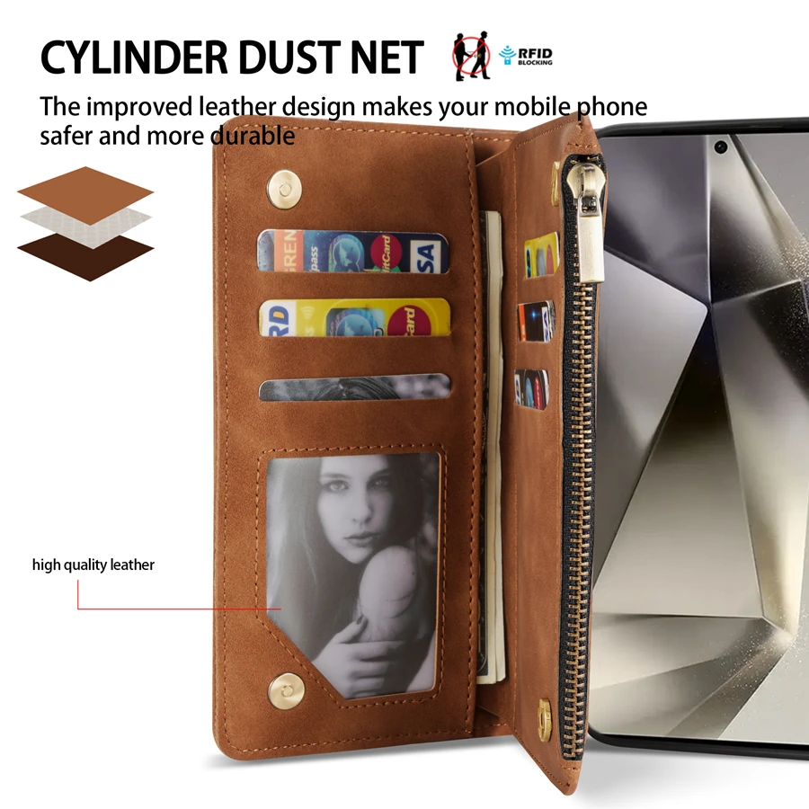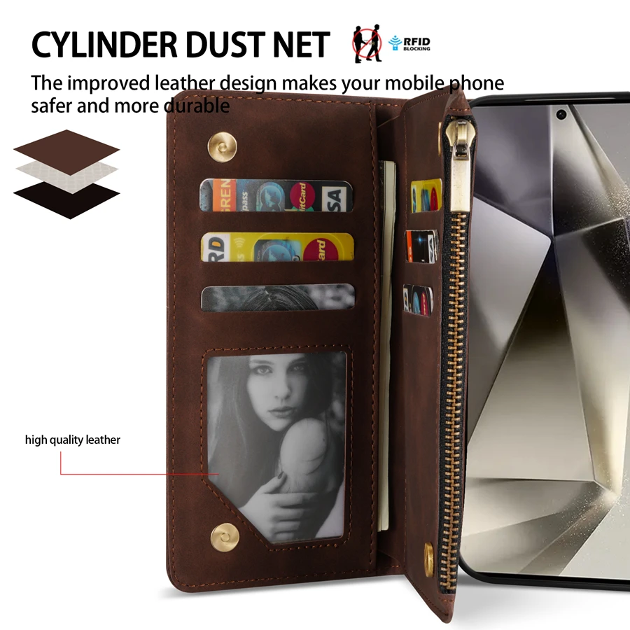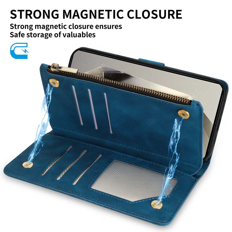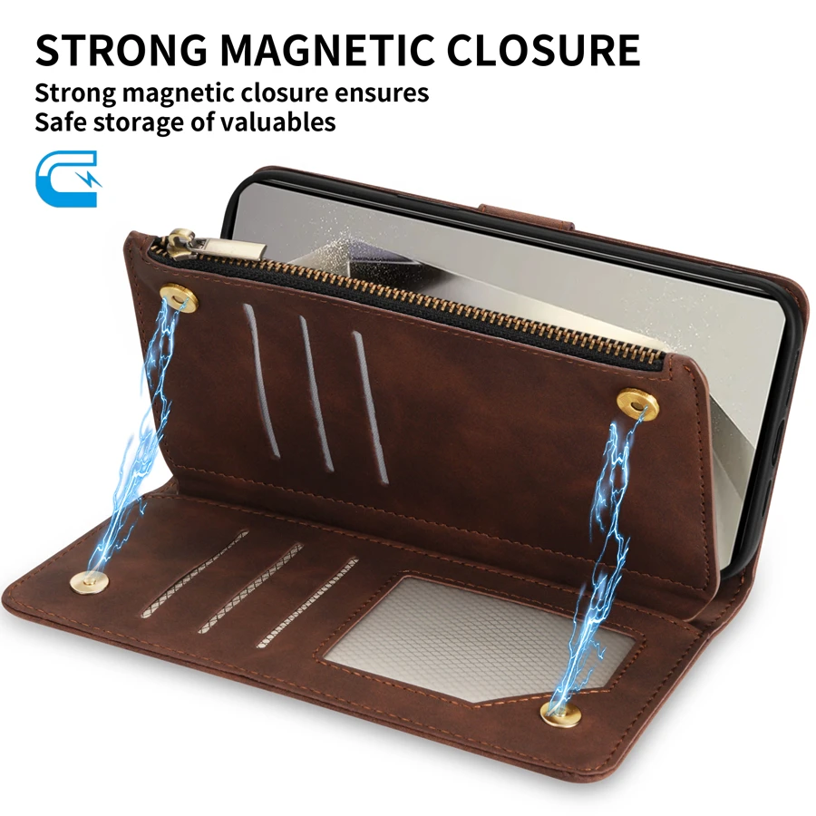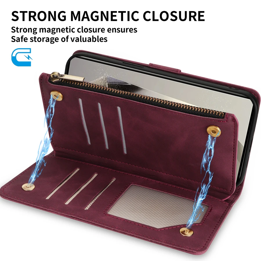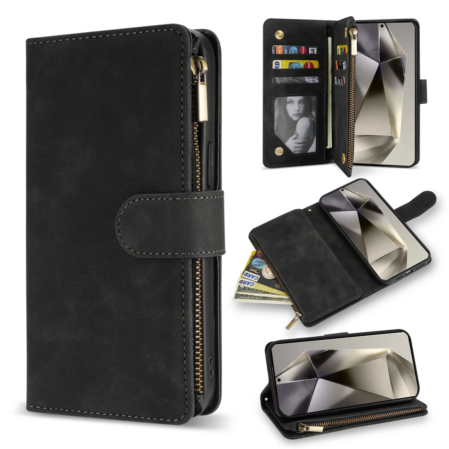 Wallet Multi-card Zipper Kickstand Magnetic Flip Leather Case For Samsung Galaxy S24 Ultra S23 FE S22 Plus A14 A15 A53 A54 A55